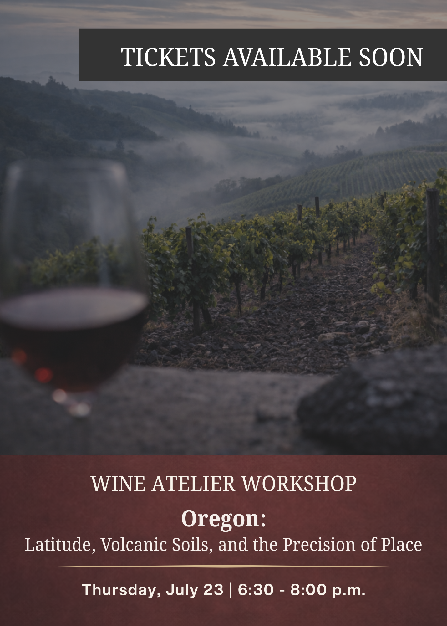In this workshop, we’ll explore the Willamette Valley and its sub-AVAs, examining how climate and site influence Pinot Noir and Chardonnay. Through guided tasting, you’ll discover why Oregon has become one of the most compelling wine regions in the United States — and how subtle differences in soil and exposure create precision and balance in the glass.